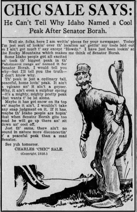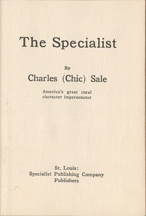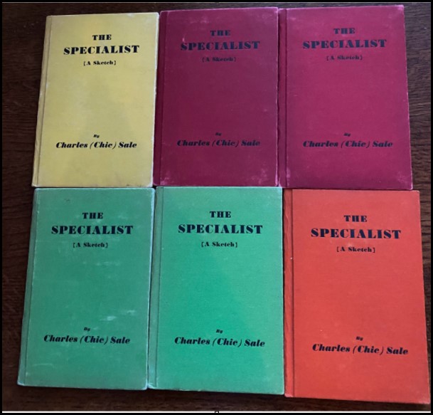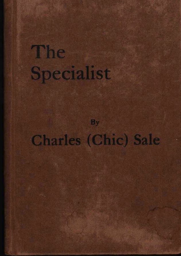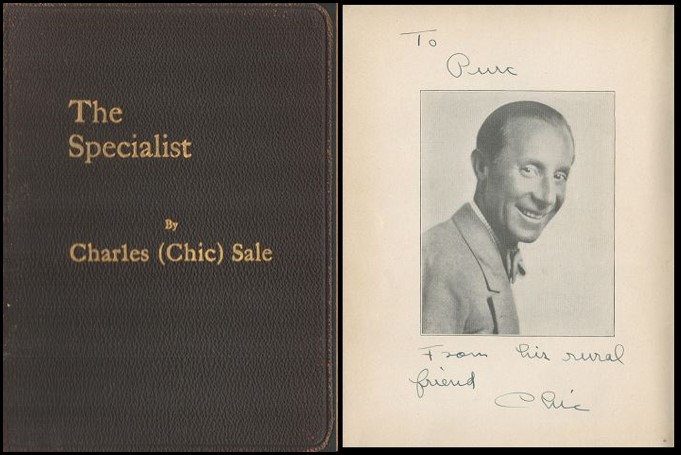 I do extensive research in newspaper databases before writing these pieces. Fortunately, several lengthy newspaper stories chronicled the history of how The Specialist got into print. Did they do extensive research or just write up a good yarn with uncheckable details? Spoiler: it’s the latter. Can they be checked? Amazingly, the answer is yes. Matthew Sale Brown, Chic’s youngest grandson, maintains a website on his grandfather. I approached him with bibliographic questions I couldn’t answer and he graciously offered more than I could have imagined. His grandmother, Marie Bishop Sale, wrote an unpublished biography of Chic, The Life of Charles “Chic” Sale, in 1981. (Compiled, indexed, and edited by Cherry Sale Brown.)