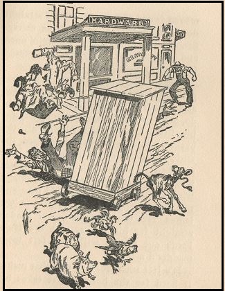 No matter that every house needed an outhouse in the days before indoor toilets, and every man, woman, and child used them. The very idea of talking about such an everyday necessity in public before a mixed group was near unthinkable. Outhouses were in the category of “earthy” material and so was as risque as blue language or a bare female thigh. Alicia Meyer’s Hollywood Essays quotes Will Rogers on The Specialist: “It’s like reading that the Archbishop of Canterbury has been caught at a night club.” (The quote is not sourced and appears nowhere else online, but it seems to encapsulate the feeling of the times.) Certainly that was part of the speech’s appeal. This was true situational comedy: no jokes, just a series of recognizable and relatable human flubs and failures, but on a subject previously considered untouchable.