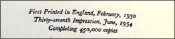 The Eighth Printing has a large hexagonal block on the dust jacket reading “More Than 300,000 sold.” The Tenth Printing raises that to 400,000, and the 12th Printing to a Half Million. The Fourteenth Printing trumps them, announcing that the book had passed the million mark. And the Nineteeth Printing, from 1956, move the needle off the scale to an incredible “More than 2,000,000 Copies Sold.” The sales include those from eleven other countries listed on the back cover.