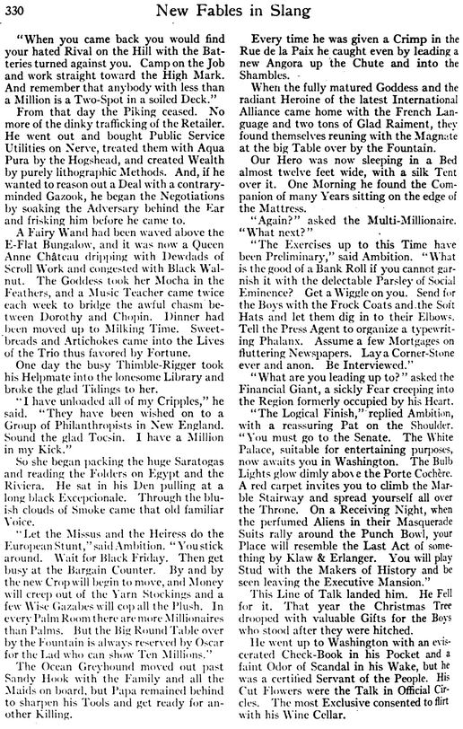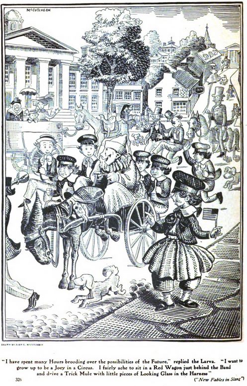 Why not a fable for a change? and instead of slavishly copying Æsop and La Fontaine, why not retain the archaic form and the stilted manner of composition and, for purposes of novelty, permit the language to be “fly,” modern, undignified, quite-up-to-the-moment?