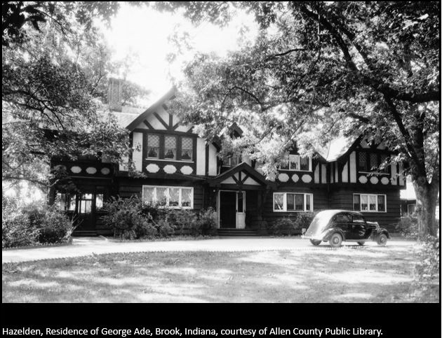 Forgotten… except in heartland of Indiana. The George Ade Memorial Health Care Center, now a skilled nursing facility that replaced a hospital, lies on the Hazelden Manor grounds (which covered 2400 acres, almost three times the size of New York’s Central Park). A historic marker was set up to commemorate the hundredth anniversary of Taft’s big moment. (A little late, not appearing until 2009.) And the Hazelden Estate may finally be restored as the center of a complex of tributes to Ade: The George Ade Museum, The Gardens, The Carriage House, and The Newton County Visitors Center. In the heart of the heartland, Ade’s version of America will always live.