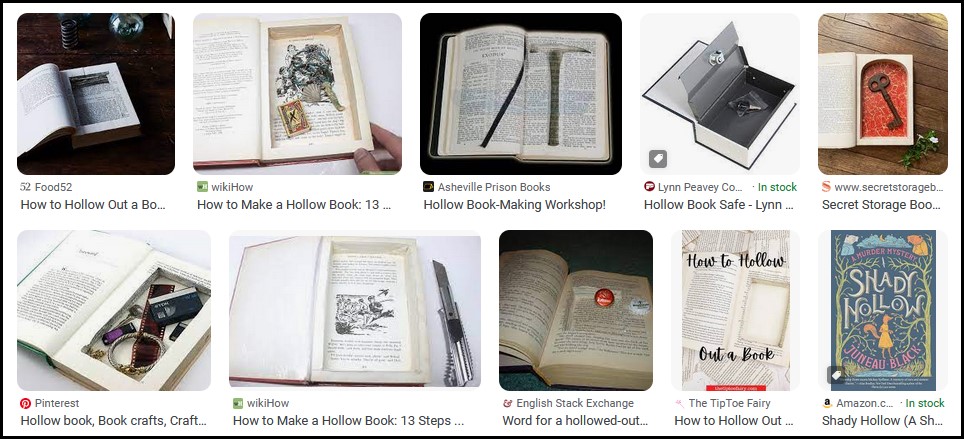 Who would want to ruin a perfectly good, even if outdated, book by cutting out hundreds of pages to create a hole revealed only when the cover was opened? Virtually everybody, it seems, even today as any Google search will show.