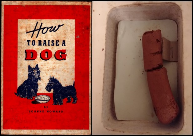 Dating the volume is impossible. The dogs on the cover look like Asta, real name Skippy, the wire fox Terrier who had starred in The Thin Man and more than a dozen other movies, many huge hits, in the 1930s. He also reappeared in After the Thin Man in 1936 and Another Thin Man, which was released in 1939. That’s the same year as Gone with the Wind and the same year that saw Fishlove’s first known copyright of a hollow book gag. Was this Dog a test to gauge the market in 1939? My copy is hollowed from a 1920s school reader series, so it could have appeared earlier or later than Gone with the Wind. For Fishlove gags were an everyday and everyyear concern.
