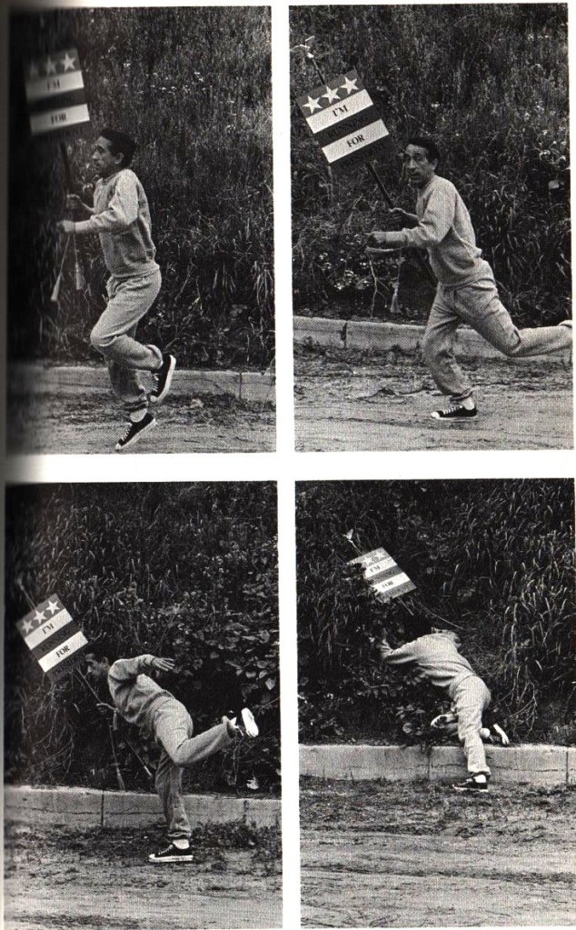 His rise was spectacular. By 1961 he was appearing on the Ed Sullivan Show, The Tonight Show with Jack Parr, the Gary Moore Show, and the Steve Allen Show. By 1964 he had two comedy albums out that helped him fill theaters for his appearances. Yet he wasn’t truly famous. His shtick was Jewish humor, at least the stereotyped New York Yiddish brand of Jewish humor, told at top speed in an accent sometimes incomprehensible outside Jewish strongholds. Why the a book in which his distinctive voice couldn’t be heard? Undoubtedly for the same reasons as the others. Somebody must have persuaded him that a run for the President would be a fantastic opportunity for publicity.