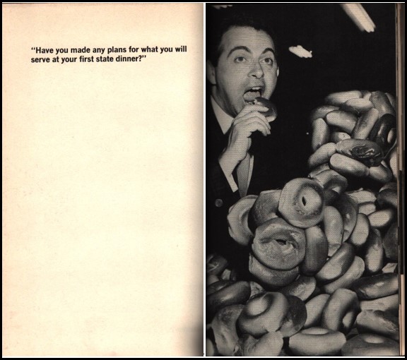 His rise was spectacular. By 1961 he was appearing on the Ed Sullivan Show, The Tonight Show with Jack Parr, the Gary Moore Show, and the Steve Allen Show. By 1964 he had two comedy albums out that helped him fill theaters for his appearances. Yet he wasn’t truly famous. His shtick was Jewish humor, at least the stereotyped New York Yiddish brand of Jewish humor, told at top speed in an accent sometimes incomprehensible outside Jewish strongholds. Why the a book in which his distinctive voice couldn’t be heard? Undoubtedly for the same reasons as the others. Somebody must have persuaded him that a run for the President would be a fantastic opportunity for publicity.