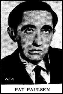 But we’ll start with Patrick Layton Paulsen, who, unlike the earlier (real) entertainers, was not famous. In fact, he may have been the least known comedian in America. Although he had spent years in various comic troupes (remember the Ric-y-tic Players?) and trios and time as a guitarist making fun of folk songs during the folk boom of the early 1960s, he entered 1967 as a 39-year-old with a wife and three young children, close to eviction and padding his gig money making two dollars a hour washing windows.