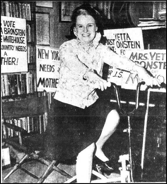 Yetta made such an impression over the radio that Abel decided to build an actual campaign on it. He had a problem that none of the earlier campaigns faced, except Walt Kelly’s: his candidate was imaginary. The voice on the telephone was his dialect-gifted wife Jeanne’s, who couldn’t be seen in public as Yetta, a forty-eight-year old Bronx housewife and mother, because she was “an attractive twenty-eight-year-old blonde ingenue type.”