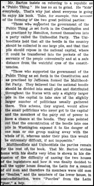 The same paper, in this very long adulation of the book, provides a good example of Barton’s rendition of political history.