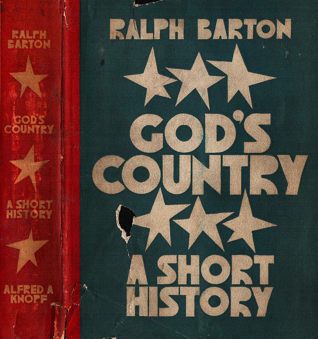Barton, thoroughly fed up with the inanities of American society, God’s Country as he mockingly called it, fled the country for Paris shortly after the book was published. There he stayed for but a moment, just long enough it seems to divorce his French fourth wife. Barton’s bitter tone may have been stimulated by his heartbreaking divorce from his third wife, Carlotta Monterey, who in 1929 was forever lost to him when she married playwright Eugene O’Neill. Depressed and fearing insanity – he is now thought to have had bipolar disease – he shot himself in 1931, shortly before his fortieth birthday.
