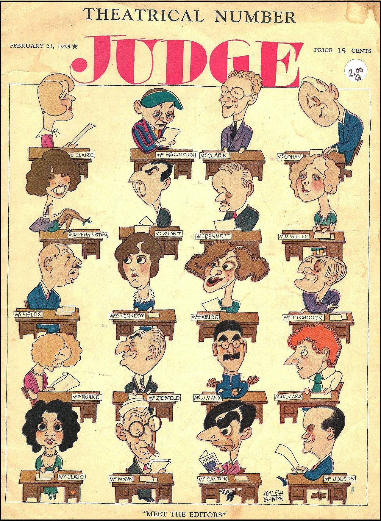 Barton’s career as an artist was so vast and he was so prolific that it’s tempting to fill up this page with art and neglect the point, which is his one book. So I’ll compromise with the February 21, 1925 cover of the humor magazine Judge. The editor turned the “Theatrical Number” over to the leading comic stars of Broadway, all of whom were caricatured on this magnificent collective, even those who didn’t write anything for it.